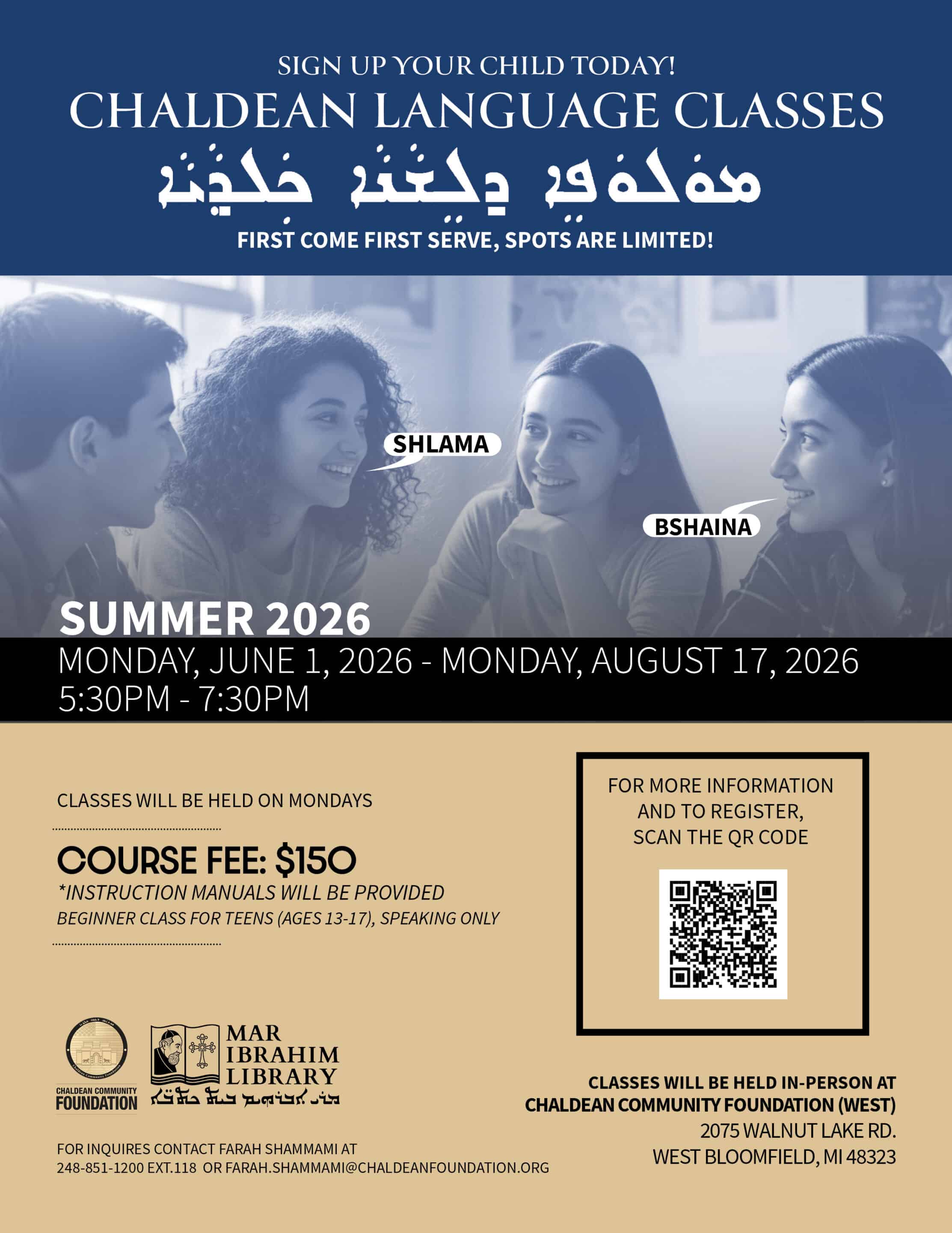 Chaldean Language Classes for Teens