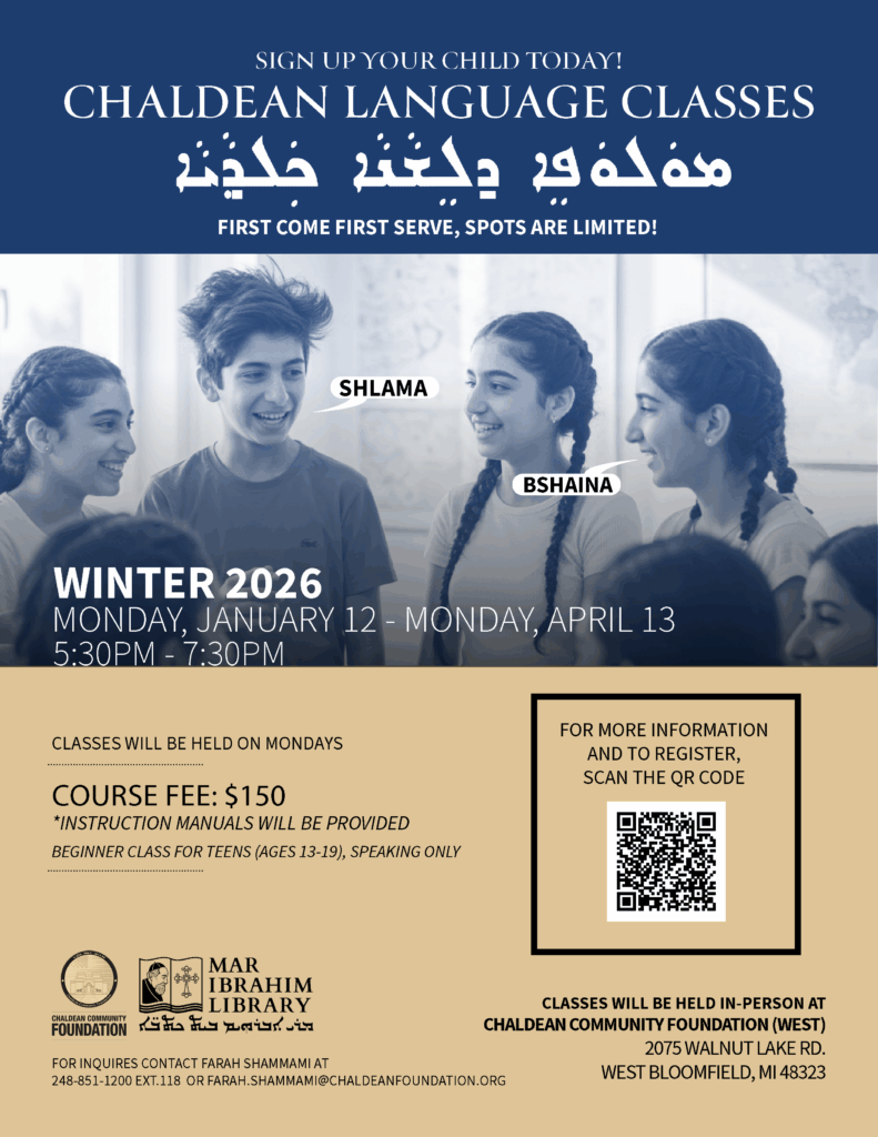 In an effort to develop programs and services to support the health and well-being of Michigan’s senior Chaldean adults or caregivers, we want to learn about individual and community needs for community members who are 60 years or older.